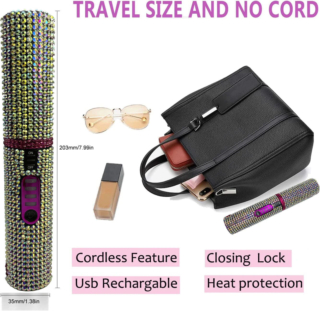 • Portable & Worldwide Hair Straightener: This cordless hair straightener is only 8"in. Fits easily into a handbag, makeup bag, perfect for emergency styling while in outside or in car. IMPORTANT: Since this mini flat iron is specially designed for traveling or going out, it will pursue a smaller volume for easy carrying, so it is suggested to section your hair to thiner smaller amounts while use.