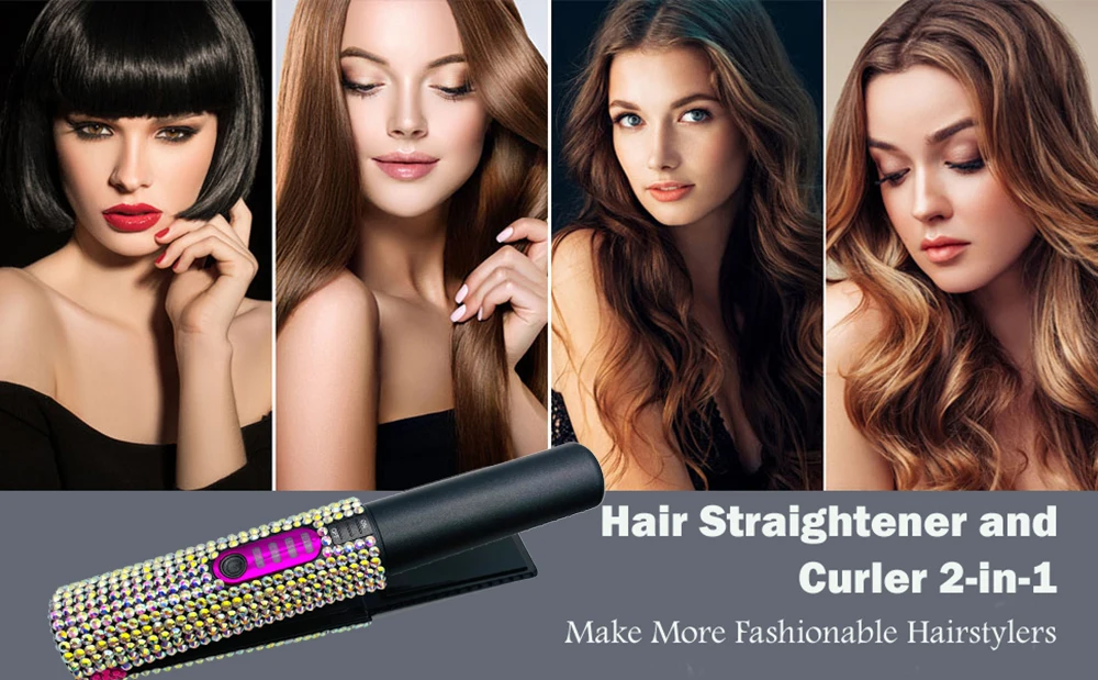 Cordless Hair Straightener Bling Portable Ni Flat Iron Ceramic Curling Iron with 4800Mah Rechargeable Battery Hair Straightener